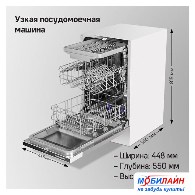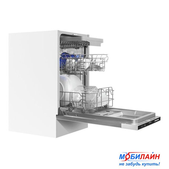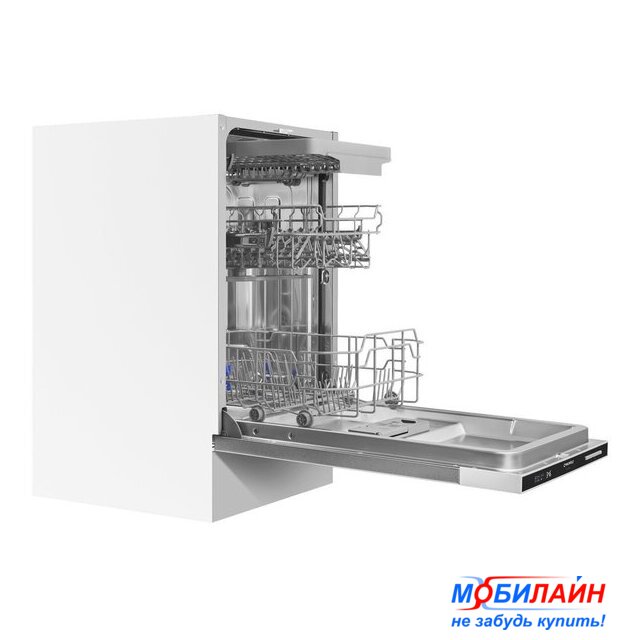 загрузка на 9 комплектов посуды, электронное управление, 5 программ, 44.8x55x82 см, черный цвет, сушка: с открыванием дверцы, индикация на полу: нет