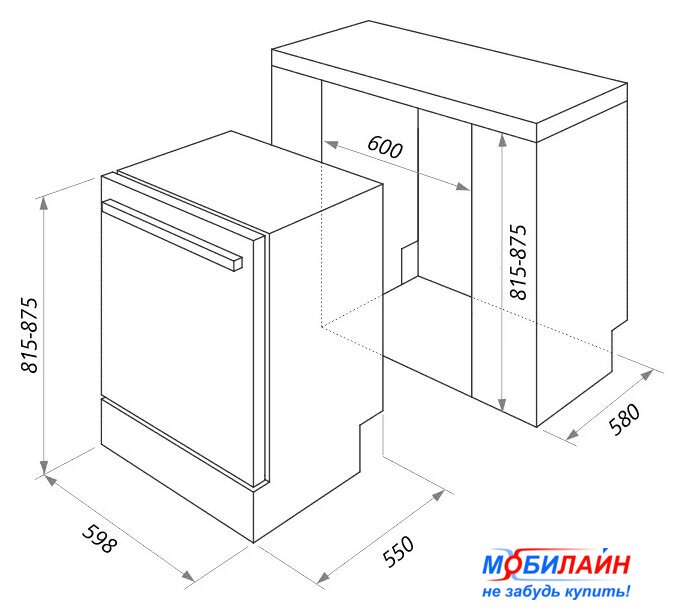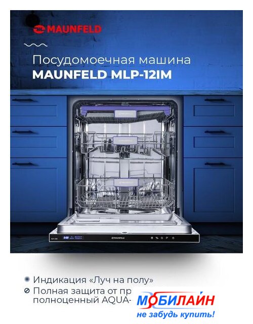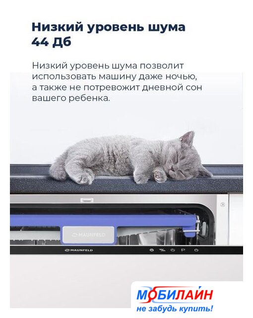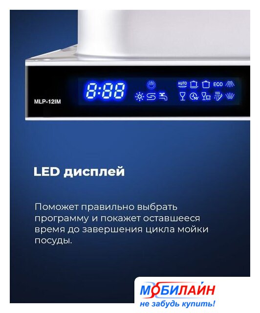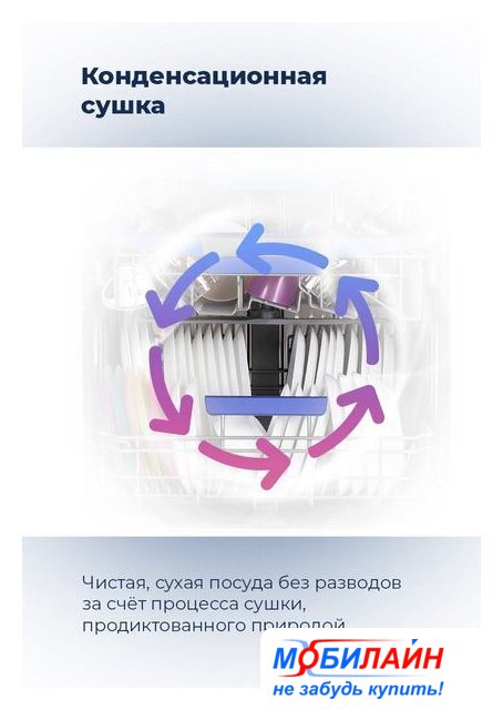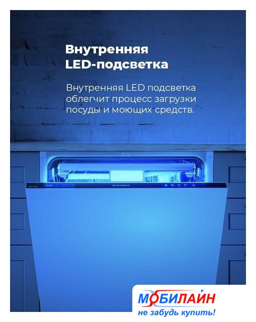 загрузка на 10 комплектов посуды, сенсорное управление, 7 программ, 44.6x55x82 см, черный цвет, сушка: с открыванием дверцы, индикация на полу: проекция дисплея
