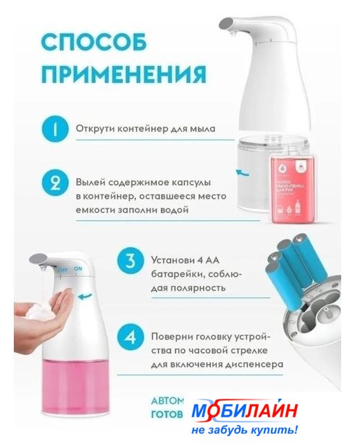 сенсорный дозатор для жидкого мыла, настольная установка, пластик, объем: 400 мл