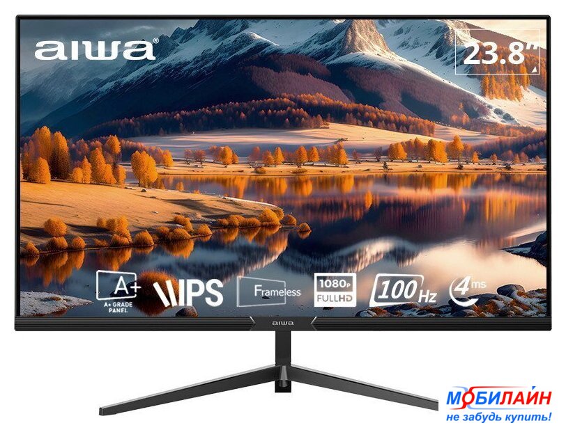 23.8", 16:9, 1920x1080, IPS, 100 Гц, динамики, интерфейсы HDMI+D-Sub (VGA)