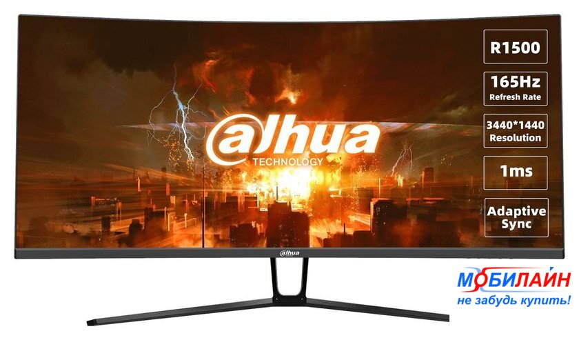 34", 21:9, 3440x1440, VA, изогнутый (1800R), 160 Гц, AMD FreeSync Premium, динамики, интерфейсы HDMI+DisplayPort, регулировка высоты