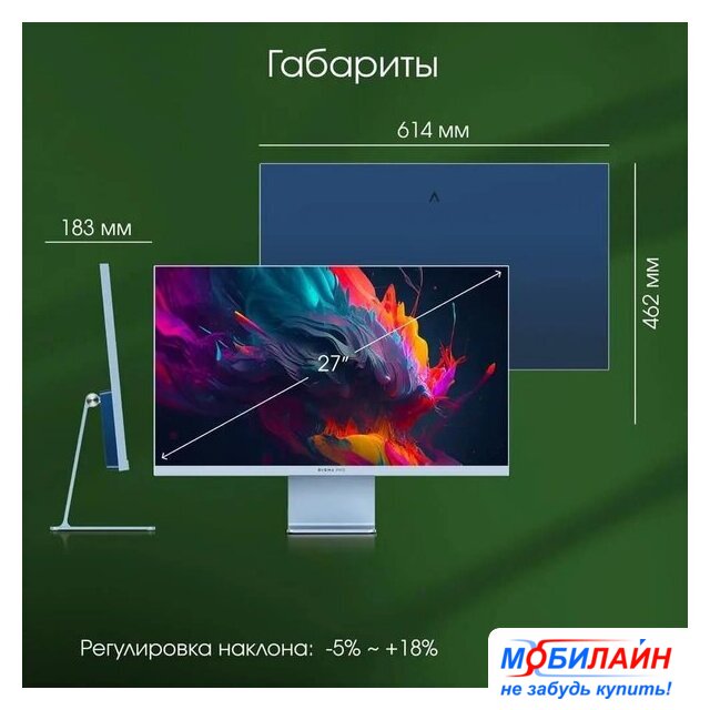27", 16:9, 2560x1440, IPS, подсветка miniLED, 180 Гц, VESA Adaptive-Sync, интерфейсы HDMI+DisplayPort, регулировка высоты, портретный режим