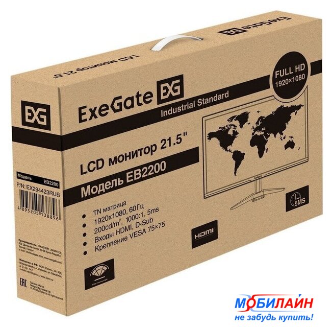 21.5", 16:9, 1920x1080, VA, 60 Гц, интерфейсы HDMI+D-Sub (VGA)