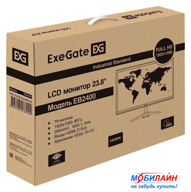 23.8", 16:9, 1920x1080, VA, 60 Гц, интерфейсы HDMI+D-Sub (VGA)
