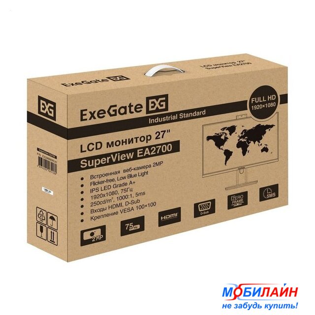27", 16:9, 1920x1080, IPS, 100 Гц, AMD FreeSync, интерфейсы HDMI+DisplayPort+D-Sub (VGA)