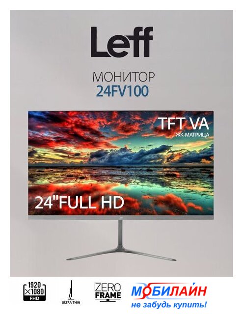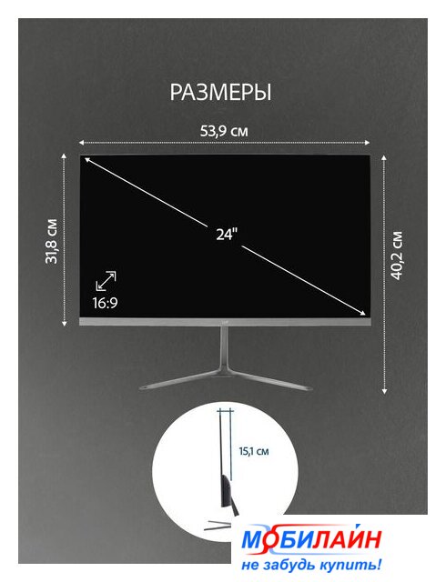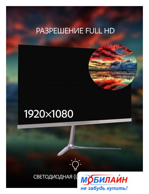 24", 16:9, 1920x1080, IPS, 100 Гц, интерфейсы HDMI+D-Sub (VGA)