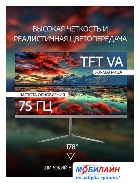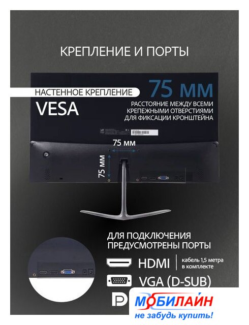 24", 16:9, 1920x1080, VA, 75 Гц, VESA Adaptive-Sync, интерфейсы HDMI+D-Sub (VGA)