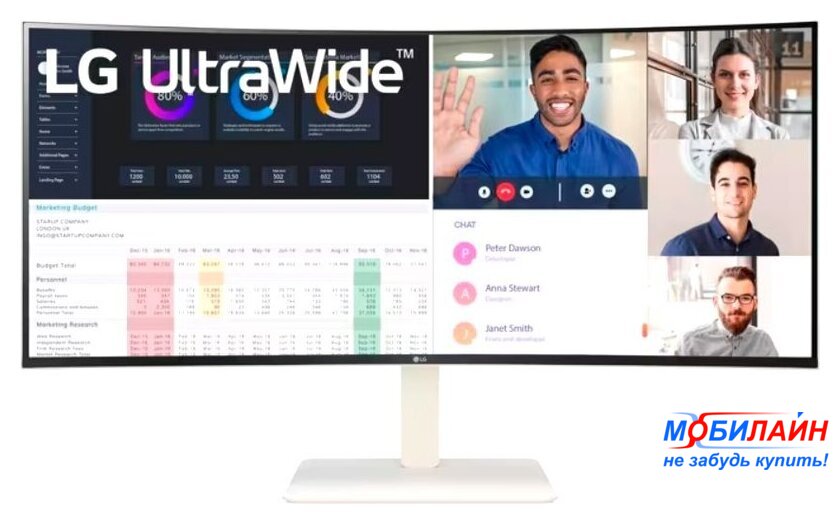 34", 21:9, 3440x1440, IPS, 60 Гц, динамики, интерфейсы HDMI+DisplayPort+USB Type-C, регулировка высоты