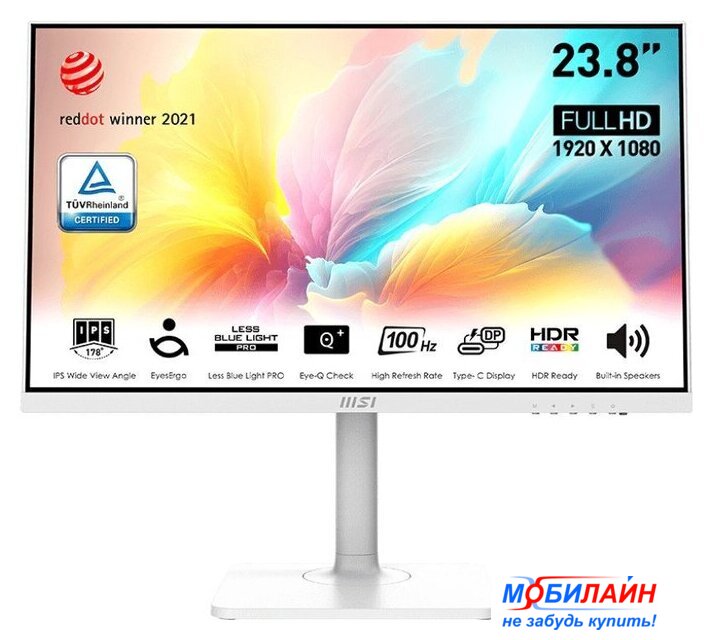 23.8", 16:9, 1920x1080, IPS, 75 Гц, AMD FreeSync, динамики, интерфейсы HDMI+DisplayPort+D-Sub (VGA), регулировка высоты