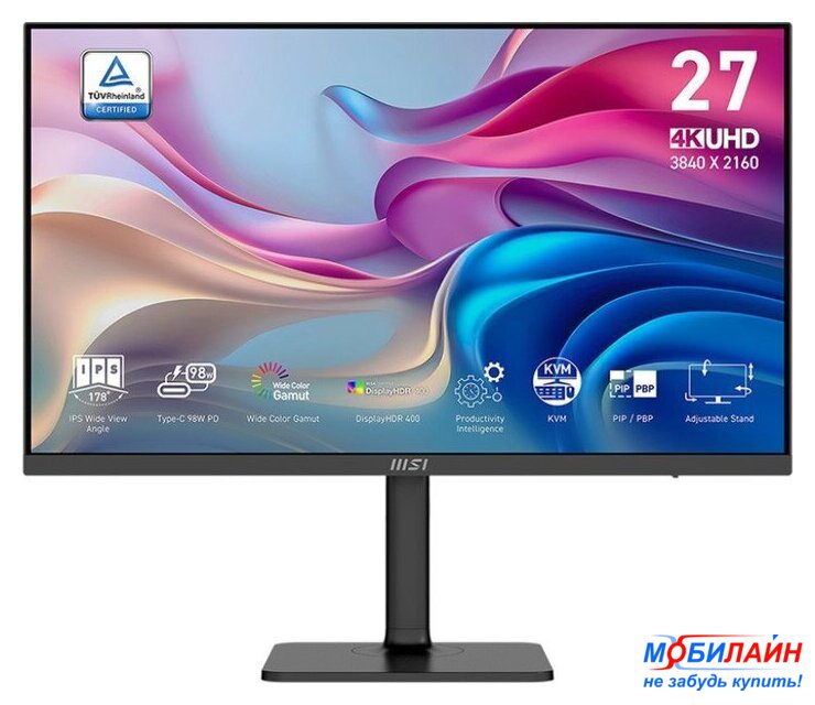 27", 16:9, 3840x2160, IPS, 60 Гц, AMD FreeSync, динамики, интерфейсы HDMI+DisplayPort+USB Type-C, регулировка высоты, портретный режим