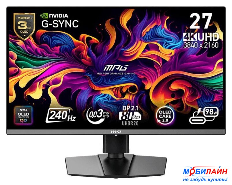 27", 16:9, 3840x2160, IPS, 165 Гц, AMD FreeSync Premium/совместимый с NVIDIA G-Sync, динамики, интерфейсы HDMI+DisplayPort, регулировка высоты, портретный режим