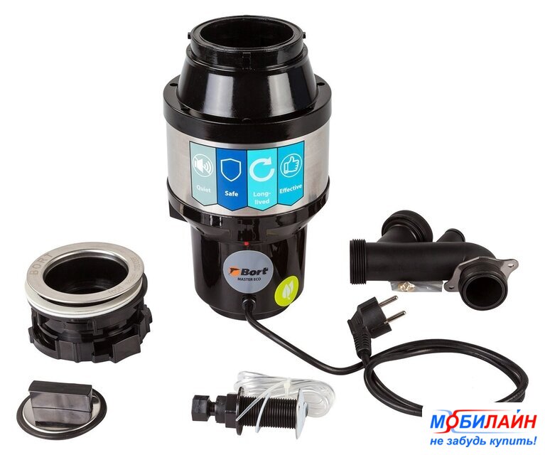электрический, синхронный двигатель, 0.5 л.с., 390 Вт, 3500 об/мин, управление: дистанционная кнопка, камера 1.05 л, композитный материал, 2-ступенчатое измельчение, непрерывная загрузка, с защитой от перегрузок, 58 дБ