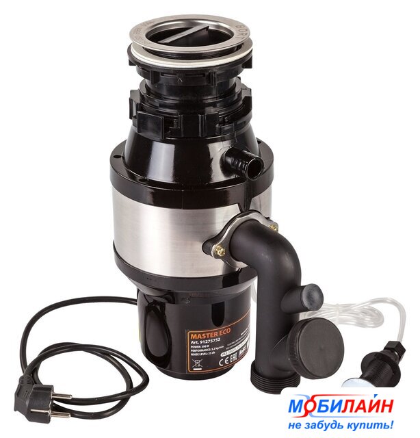 электрический, синхронный двигатель, 0.5 л.с., 375 Вт, 3000 об/мин, управление: пневмокнопка, камера 0.86 л, композитный материал, 3-ступенчатое измельчение, непрерывная загрузка, с защитой от перегрузок, 52 дБ
