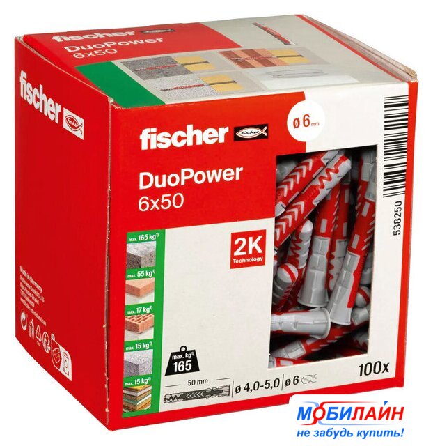 50 в упаковке, 90 x 13 мм, пластик, применение: бетон/полнотелый кирпич/пустотелый кирпич/пенобетон