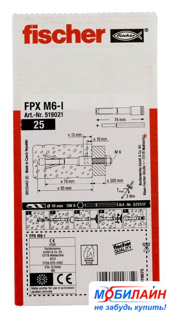 400 в упаковке, 220 x 10 мм, пластик, применение: бетон/полнотелый кирпич/пустотелый кирпич