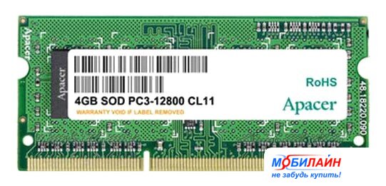 8 ГБ, 1 модуль DDR3 SO-DIMM, частота 1333 МГц, CL 9T, тайминги 9-9-9-24, напряжение 1.5 В