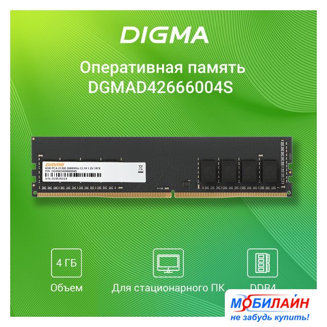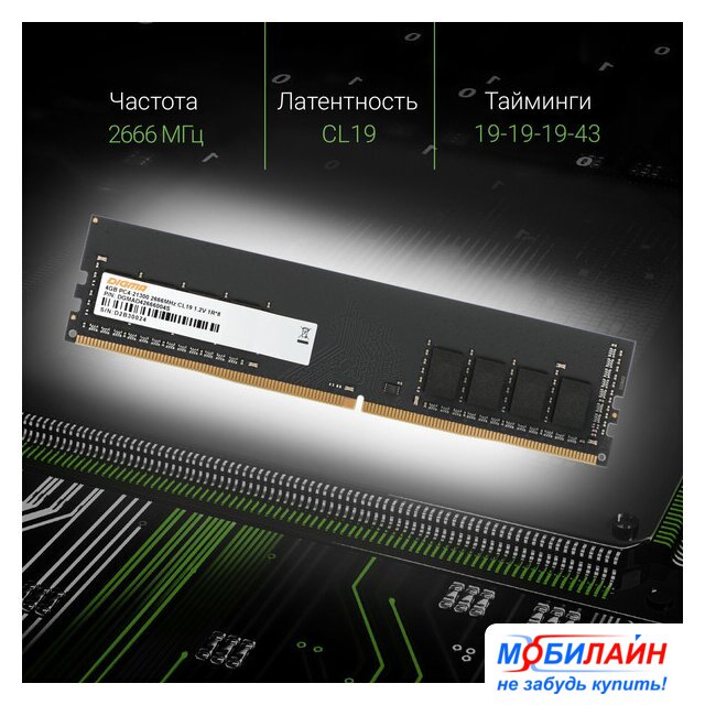 1 модуль, частота 2666 МГц, CL 19T, напряжение 1.2 В