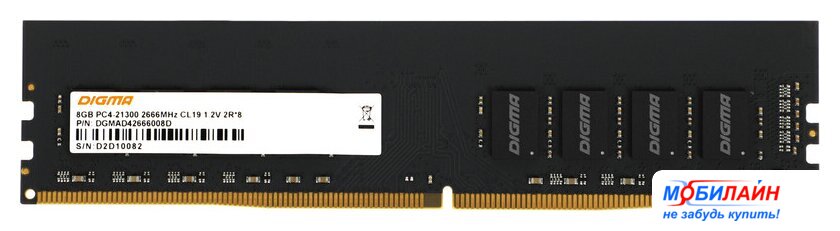 8 ГБ, 1 модуль DDR4 DIMM, частота 3200 МГц, CL 22T, напряжение 1.2 В