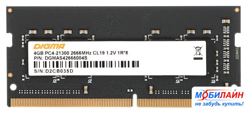 1 модуль, частота 2666 МГц, CL 19T, напряжение 1.2 В