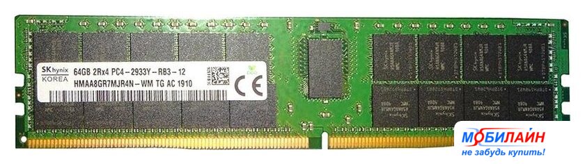 64 ГБ, 1 модуль DDR4 DIMM Registered, частота 3200 МГц, CL 22T, тайминги 22-22-22, напряжение 1.2 В