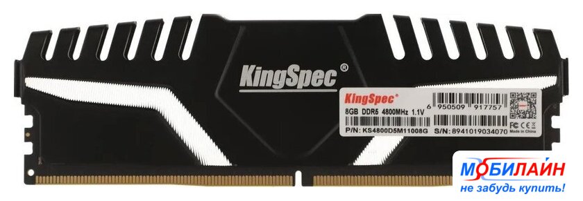 16 ГБ, 1 модуль DDR5 DIMM, частота 4800 МГц, CL 40T, тайминги 40-40-40-77, напряжение 1.1 В