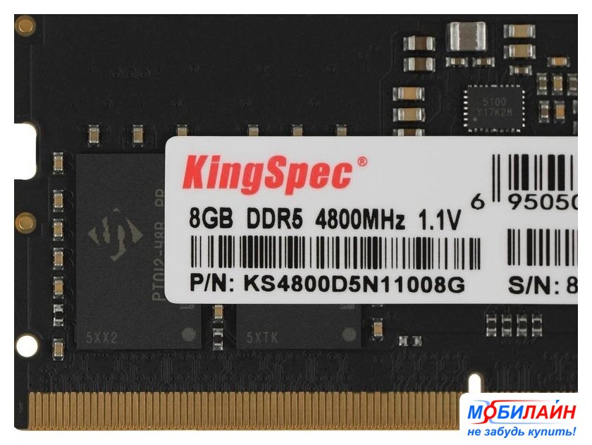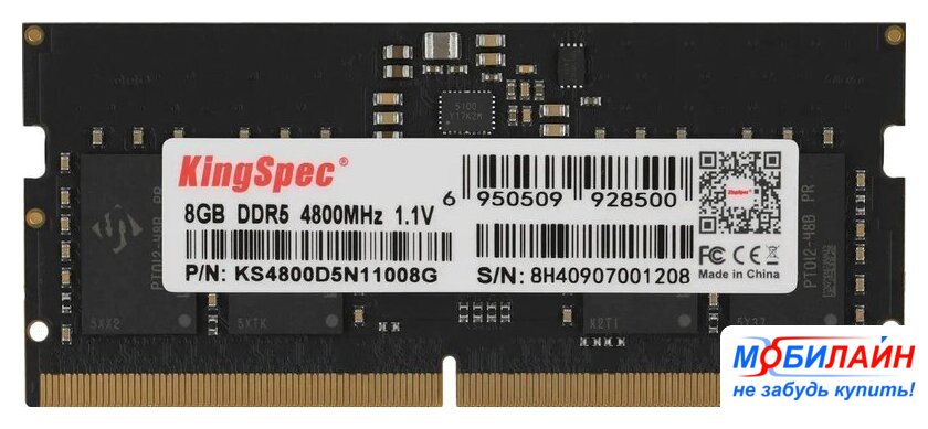 8 ГБ, 1 модуль DDR5 SO-DIMM, частота 4800 МГц, CL 40T, напряжение 1.1 В