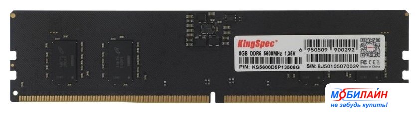 8 ГБ, 1 модуль DDR5 DIMM, частота 4800 МГц, CL 19T, напряжение 1.1 В