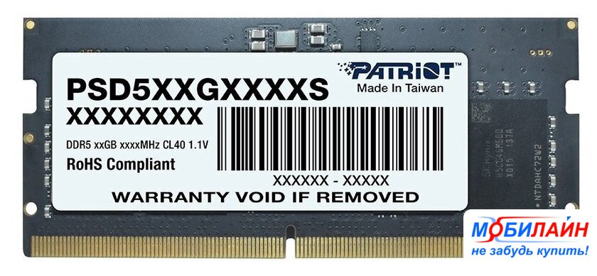8 ГБ, 1 модуль DDR5 SO-DIMM, частота 4800 МГц, CL 40T, напряжение 1.1 В