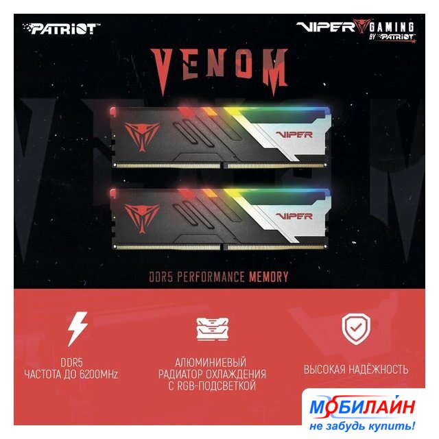 32 ГБ, 2 модуля DDR5 DIMM по 16 ГБ, частота 6000 МГц, CL 28T, тайминги 28-36-36-96, напряжение 1.4 В