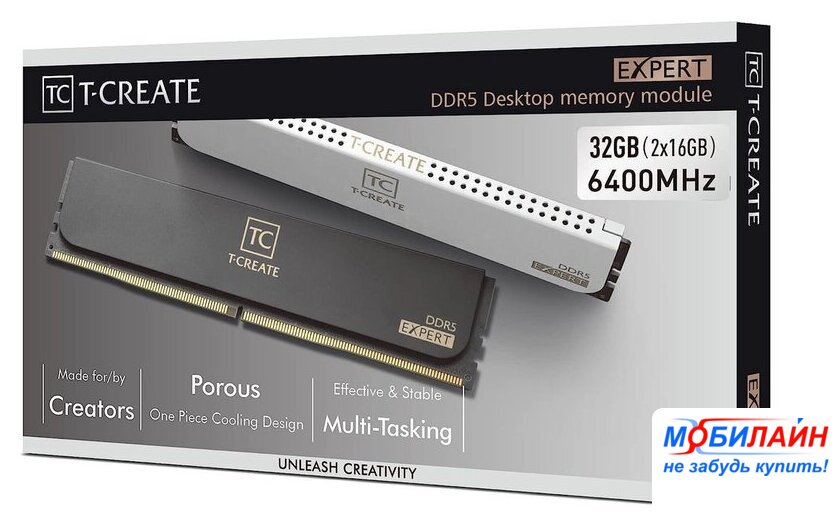 32 ГБ, 2 модуля DDR5 DIMM по 16 ГБ, частота 6400 МГц, CL 32T, тайминги 32-39-39, напряжение 1.4 В