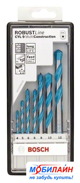 7 шт, обрабатываемый материал: бетон, хвостовик SDS+, диаметр 5 мм/5.5 мм/6 мм/7 мм/8 мм/10 мм, режущих кромок: 2