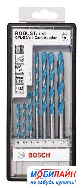 Комплектация | Набор из 7 сверл CYL-9 MultiConstruction: 5,0 / 5,5 / 6,0 / 6,0 / 7,0 / 8,0 / 10,0 мм |