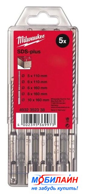 Комплектация | Набор буров Milwaukee M2 SDS-Plus 5 / 6 x 110 мм и 6 / 8 / 10 x 160 мм |