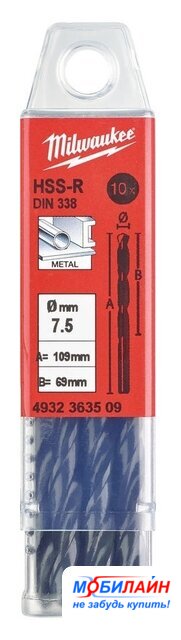 Комплектация | Сверла по металлу HSS-R D 7,5x69x109 мм |