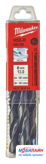 | Комплектация | Сверла по металлу HSS-R D 13,0x101x151 мм |