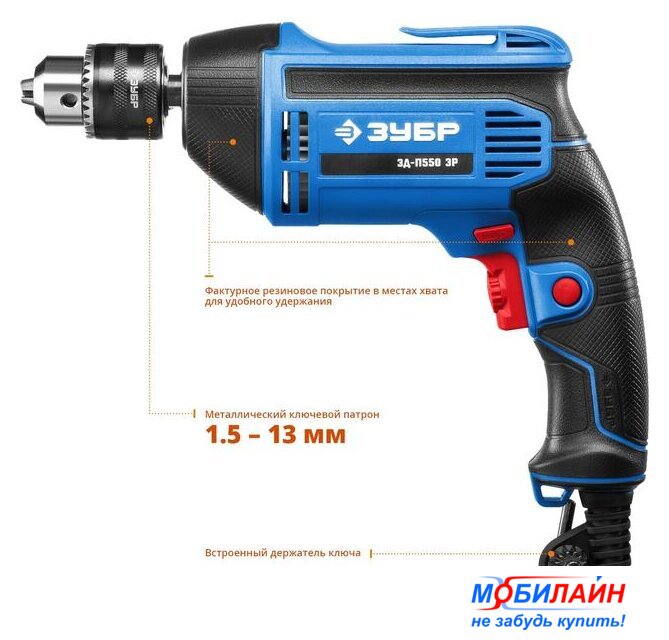 безударная дрель, 550 Вт, патрон быстрозажимной, 1 скорость, режимы: сверление