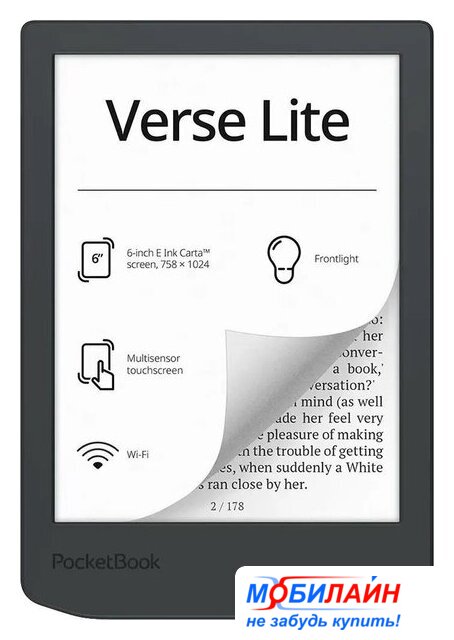 экран 6" E-Ink Carta, 768 x 1024, сенсорный, с подсветкой, память 8 Гб, карты памяти, Wi-Fi
