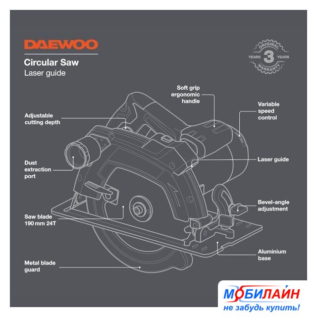 | Комплектация | - Пила циркулярная - 1 шт.- Параллельная направляющая - 1 шт.- Пильный диск - 1 шт.- Шестигранный ключ - 1 шт.- Адаптер подключения пылесоса - 1 шт.- Руководство по эксплуатации- Коробка |