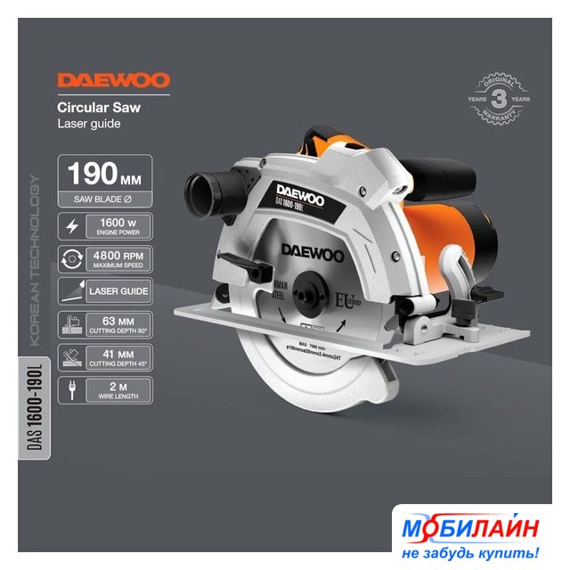 дисковая, питание: сеть, 1200 Вт, диаметр диска: 190 мм, 5000 об/мин