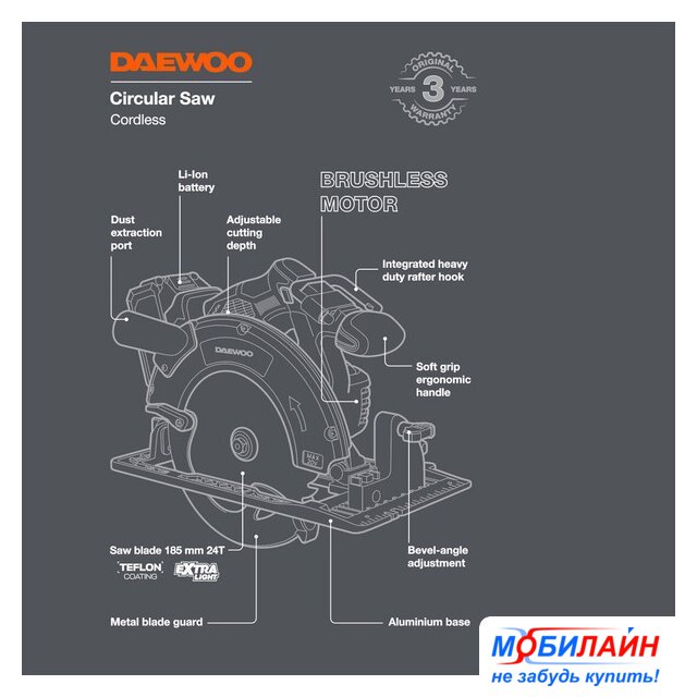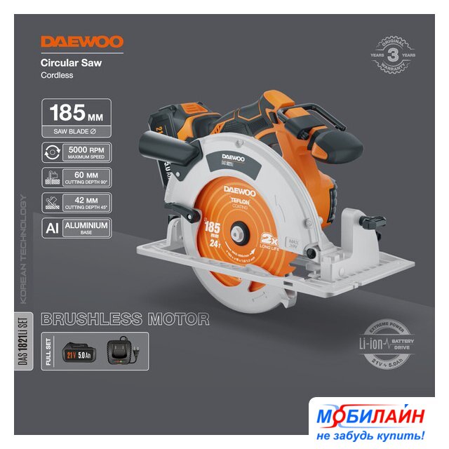 | Комплектация | - Циркулярная пила - 1 шт.- Зарядное устройство - 1 шт.- Аккумулятор 5,0 Ач - 1 шт.- Пильный диск - 1 шт.- Шестигранный ключ - 1 шт.- Параллельная направляющая - 1 шт.- Адаптер подключения пылесоса - 1 шт.- Руководство по эксплуатации- Коробка |