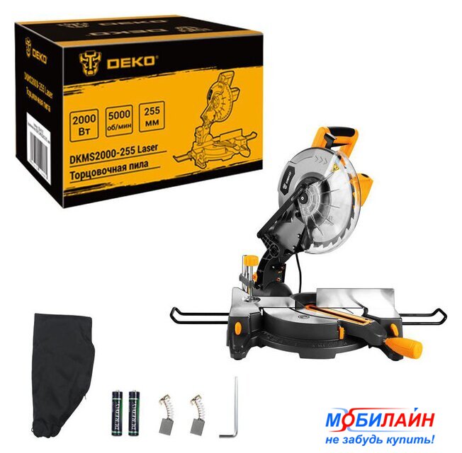 | Комплектация | - Пила торцовочная - 1 шт.- Мешок для пыли - 1 шт.- Пильный диск 255×25,4мм - 1 шт.- Батарейка для лазерного маркера - 2 шт.- Запасные угольные щетки - 1 комплект- Инструкция- Коробка |