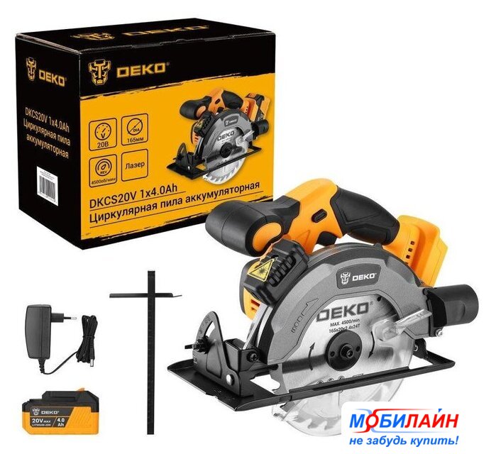 | Комплектация | - Циркулярная пила - 1 шт.- Аккумулятор 4,0 Ач - 1 шт.- Зарядное устройство - 1 шт.- Параллельный упор - 1 шт.- Шестигранный ключ - 1 шт.- Руководство по эксплуатации- Коробка |