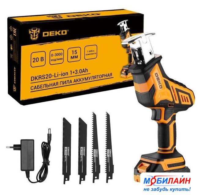 | Комплектация | - Сабельная пила - 1 шт.- Аккумулятор 3,0 Ач - 1 шт.- Зарядное устройство - 1 шт.- Пильное полотно - 4 шт.- Руководство по эксплуатации- Коробка |