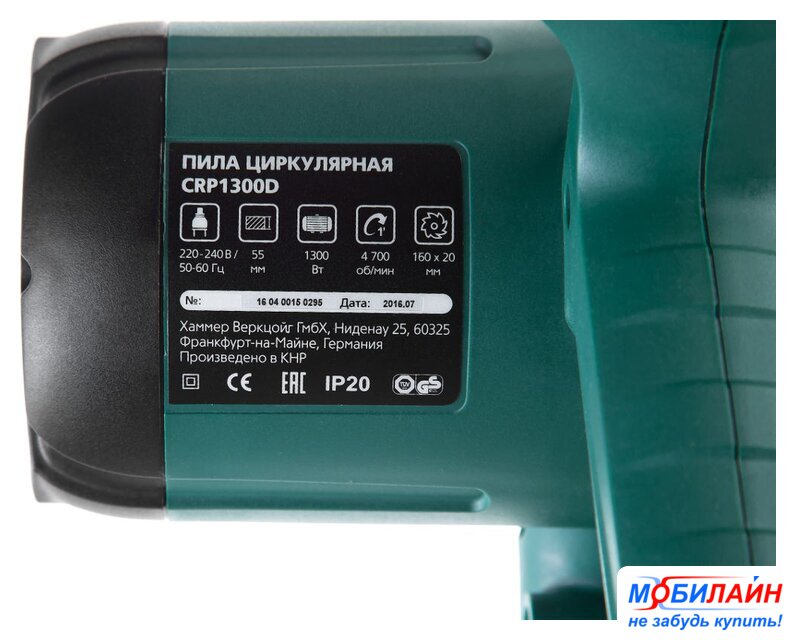 дисковая (циркулярная), 1600 Вт, питание: сеть, диаметр диска: 190 мм, 4700 об/мин