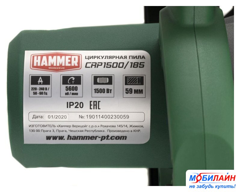 дисковая, питание: сеть, 1500 Вт, диаметр диска: 190 мм, 4800 об/мин