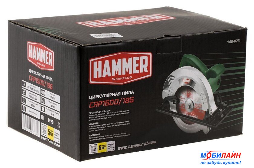 дисковая (циркулярная), 1300 Вт, питание: сеть, диаметр диска: 185 мм, 5000 об/мин