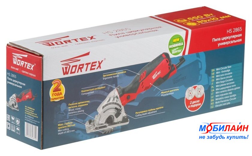 Комплектация | - Пильный диск по металлу HSS - 1 шт. - Пильный диск по дереву ТСТ (установлен на пилу) - 1 шт. - Пильный диск алмазный по керамике - 1 шт. - Направляющая линейка - Пылеотвод |