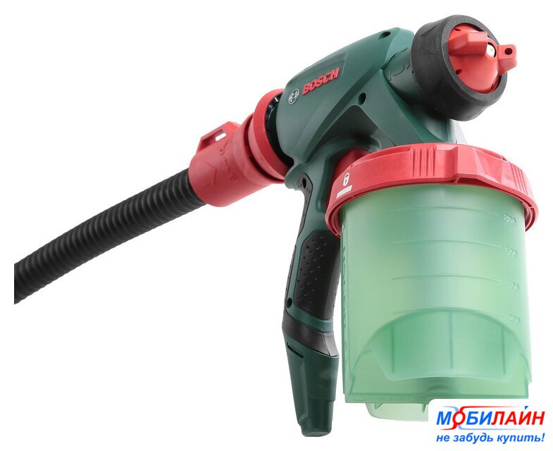 Комплект поставки | - Насадка для эмалей (черная)- Насадка для лазурей (серая)- Насадка для водоэмульсионной краски (белая)- Цветной фильтр- Щетка для очистки- 2 емкости с краской об. 1000 мл, с крышкой |