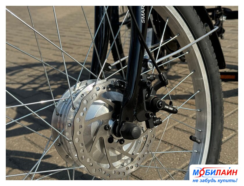 городской, двухподвес, материал рамы: сталь, колеса 20", вилка амортизационная, тормоза барабанный + дисковый механический, вес 43 кг