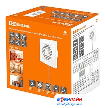 накладной осевой вентилятор, потолочная/настенная установка, диаметр: 14.7 см, производительность: 280 куб.м/ч, 16 Вт, отдельная кнопка или выключатель света, белый